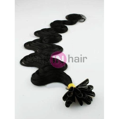 Vlasy evropského typu k prodlužování keratinem 50cm vlnité - černé