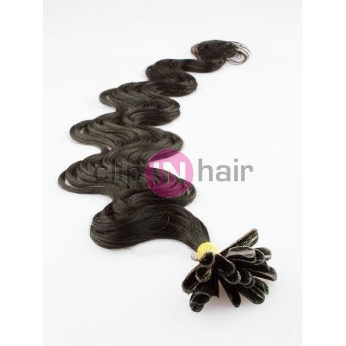 Vlnité prameny 100% lidských vlasů s keratinovým zakončením. Již připravené k aplikaci.