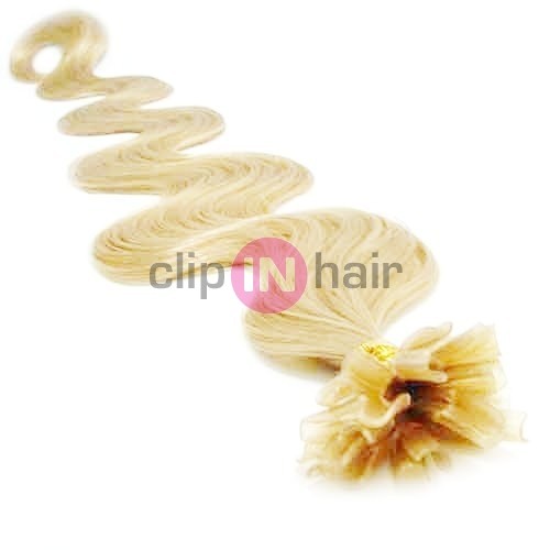 Vlasy evropského typu k prodlužování keratinem 50cm vlnité - nejsvětlejší blond