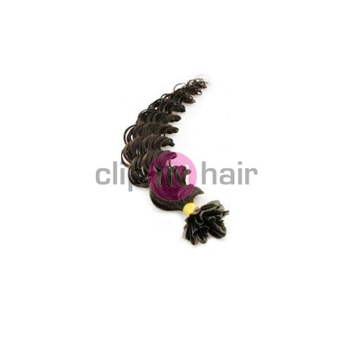 Kudrnaté prameny 100% lidských vlasů s keratinovým zakončením. Již připravené k aplikaci.